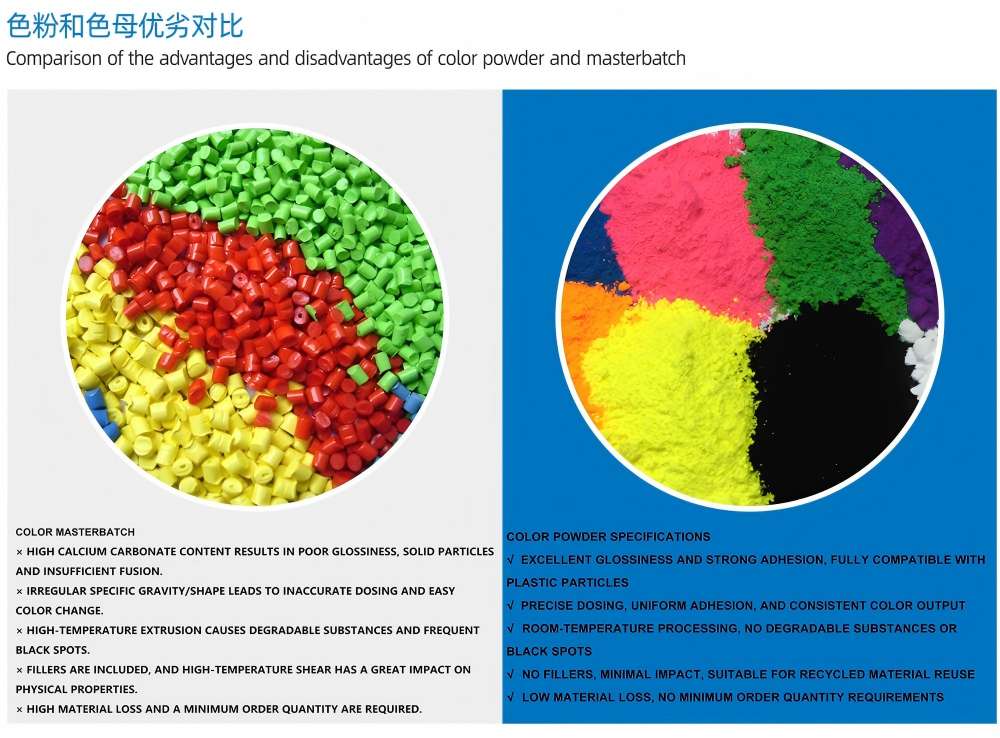 1. Reka bentuk modular: Membolehkan perubahan warna pantas dalam 5 minit; Boleh diisi dengan bahan tambahan; Serasi dengan kedua-dua pigmen dan masterbatch, membolehkan penggunaan pelbagai guna dalam satu mesin.
